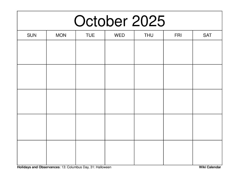 Looking for a free October 2025 calendar? We provide a variety of printable templates to help you plan your month effectively. Choose from options that include US federal holidays, customizable blank calendars, and convenient Monday-start versions. For a complete yearly overview, explore our 2025 Calendar. If you need a printable calendar for a different month or year, you can find more options on our homepage.